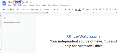 Word docx files can be edited directly with Google Docs, look for the .DOCX icon at top left.