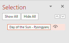 We’ve named the photo via the Selection Pane. When there’s multiple photos that’s a lot easier to manage than PowerPoint’s default ‘Picture 1’ ‘Picture 2’ etc.