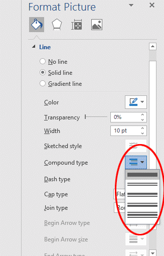 Compound Type is Microsoft’s name for the options of two-line borders with thin or thick inner or outer lines, plus one triple-line option.