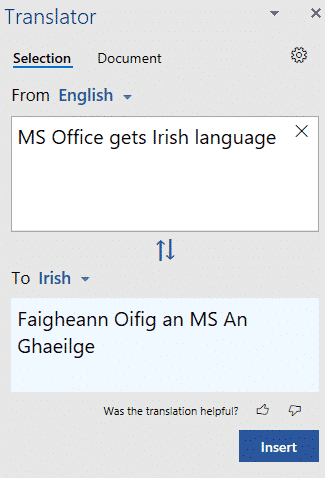 Irish Gaelic, Gaeilge or just Irish is available in Microsoft Word Translator and other translate services from Microsoft. Here’s how to download the Irish spell check and other proofing tools.