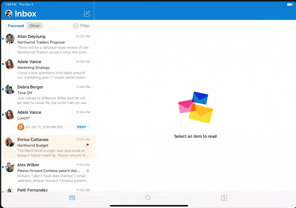 “ Multi-task like a pro with Outlook, now optimized for Split View on iPad. Open your mail and calendar side by side or drag and drop text into a message with your fingertip! “