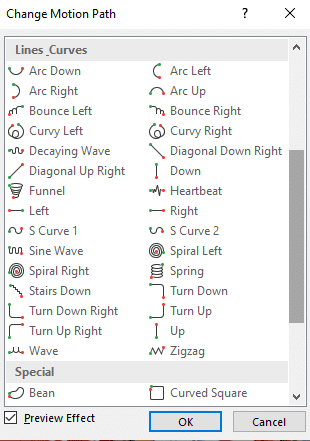 If the simple Line motion path isn’t enough, try one of the many other choices.