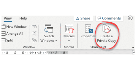 Create a Private Copy appears on the View Tab under Sharepoint.
