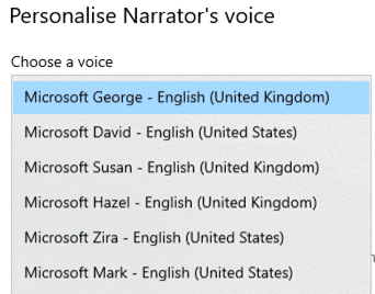 To see all the voices installed, head to Windows Settings | Ease of Use | Narrator | scroll down to Personalize Narrator’s Voice