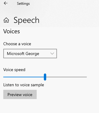 Or click on Add more voices, which opens up the Advanced Speech settings and has a proper voice preview option.