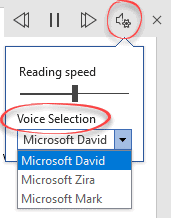 There’s a lot that’s not properly documented about Read Aloud in Word. Microsoft’s instructions are, to put it politely, minimal. The page labelled Listen to your Word documents with Read Aloud only tells you to click the Read Aloud button. Nothing about the controls that appear, play/pause, voice selection or anything else. The ‘See Also’ sends you to the many, many, Accessibility options rather than anything that might perhaps be relevant to the paying customer.