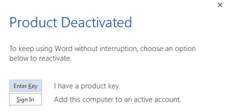 If Microsoft 365 can’t check the licence validity for 30 days, it will drop into Reduced Functionality mode. The dread ‘Product Deactivated’ message appears.