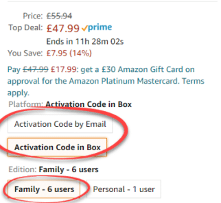 - If it’s a gift to someone else, choose the product key card or ‘Activation Code in Box’ option.