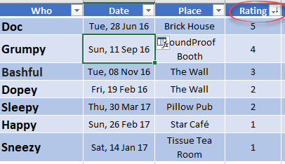 Lisa used Excel to find her True Love. She listed all her dates in Excel with details somewhat like this…