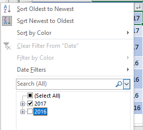 As a list gets longer, you can make it manageable by filtering to see only some results. Like only the 2017 dates in the order they occurred.