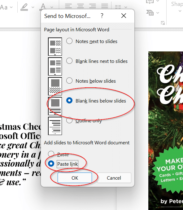 It’s important to select Paste Link if you want the slides to automatically be updated in the MS Word document as well, otherwise, you can just select Paste if you don’t wish for updates to be carried over.
