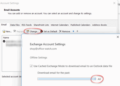 If you increase the amount saved on the computer, that will also force more copying from the server. We recommend saving more than Microsoft’s default, downloading all past email, assuming you have enough disk space.