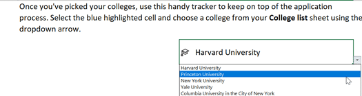 Learn about the institutions you’re drawn to and compare them based on cost, financial aid, and student demographics. An Excel table lets you narrow down a long list and compare candidates.