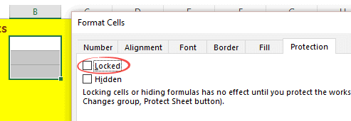 Every Excel cell has a ‘lock’ status – locked or unlocked. But the lock status has no effect until you Protect the sheet or workbook.