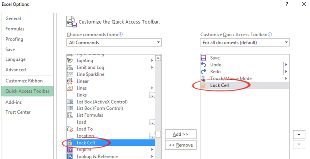 If you’re checking Locked/Unlocked cells a lot, add the Lock Cell button to the Quick Access toolbar.