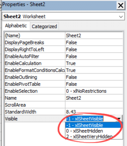 - xlSheetHidden (or FALSE) – the sheet is hidden