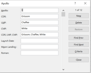 It’s a very clumsy search by modern standards. Even the button label ‘Criteria’ instead of the usual ‘Find’ or ‘Search’ seems out of place. There’s no search across all fields. The filtered Form page has no indication that it’s filtered. When you return to Form from Criteria, the Form returns to the last viewed record even if that record doesn’t match the new search. Users must know to press ‘Find Prev/Next’ to start using the criteria.