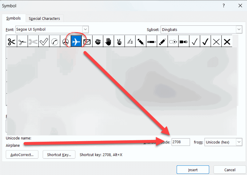 Type the Airplane ✈ symbol, icon, emoji into Microsoft Word, Excel, PowerPoint or Outlook. Both in Office for Windows and Office for Mac.