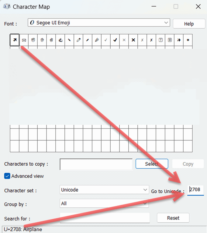 The Windows 11/10 Emoji Panel has the Airplane symbol Use Win + . (period/fullstop) to open the panel then search for “airplane” or just “plane”.