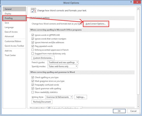 Still in the AutoCorrect Options dialog, click the Exceptions button on the right-hand side.