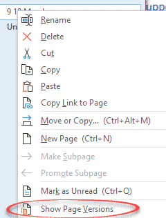 Another possibility is past versions of a particular page. Right-click on a page tab then Show Page Versions.
