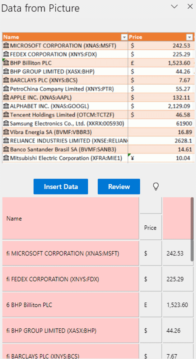 You can type in the Review pane cells to fix errors (like not recognizing a £ sign). If you don’t check all the red background cells, Excel will warn you before adding into a worksheet.