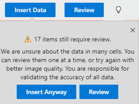 Review items (red cells) may be correct, but the ‘Data from Picture’ system isn’t sure.