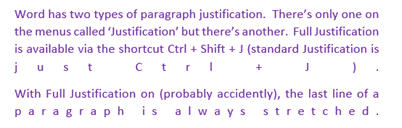 With Full Justification on (probably accidently), the last line of a paragraph is always stretched.