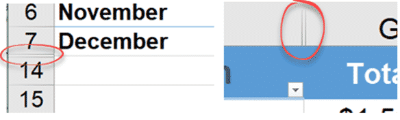 Hiding Columns and Rows in Excel