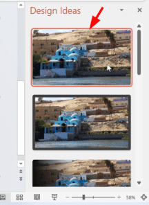 In our case, Design Ideas appeared on the right-side of the screen and we were able to click the first option which filled the slide with the image.