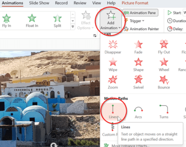 Animations | Advanced Animation | Add Animation | Lines