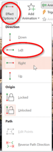 Here it will show you the direction of the lines on the screen, but you can change this by selecting Effect Options. By default, it will be in the Down direction, for our example we have chosen the Left direction.