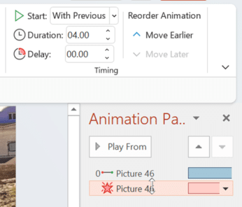 - Reorder Animation – adjust the animation to earlier or later in the animation pane.