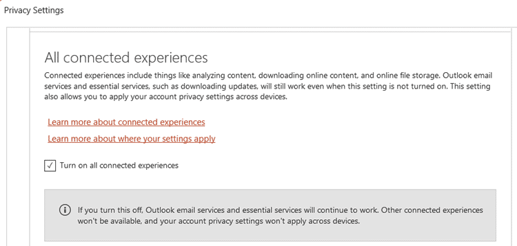 Too often, the modern Connected Services are an additional complication to Microsoft Office. Disabling part or all Connected Services might workaround a problem or, again, narrow down the cause.