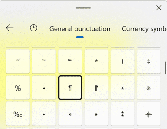 - Search for “ Pilcrow “ and the Viewer should find the symbol you need.