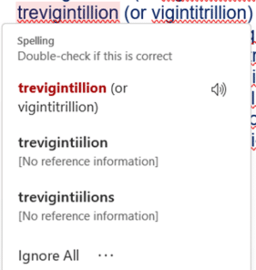There’s a little spelling error in the Word dictionary (US English), strictly speaking there’s two! It might have been in there for years since trevigintillion ( 1 followed by 72 zeros) doesn’t come up often.