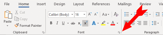 - Clicking on the arrow at the bottom right corner of the Font group.