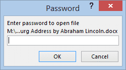 Now, whenever someone tries to open this document, they will be prompted for the password and will not be able to even view the document until they enter it.