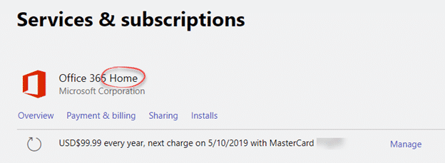 If you bought Microsoft 365 Home, Personal or University, it will appear with the name of the plan and expiry date.