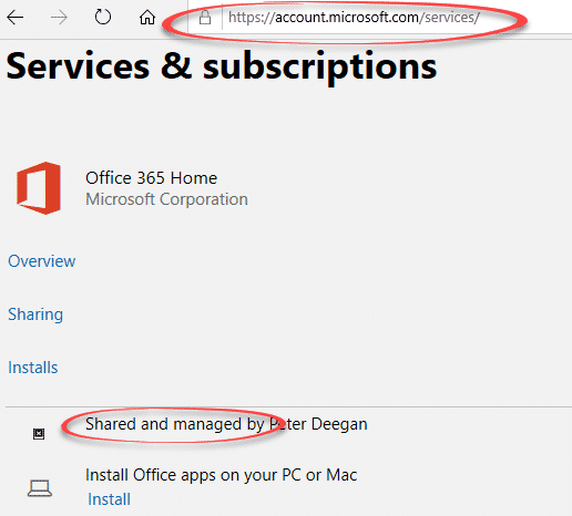 If you’re sharing a Microsoft 365 Family plan purchased by someone else, still go to Services & Subscriptions https://account.microsoft.com/services but the page will show that your access is ‘Shared and managed by …’ the owner of the plan.