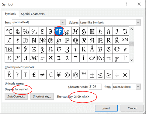 Degree Fahrenheit ℉ symbol in Word, Excel, PowerPoint and Outlook