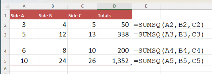 SUMSQ()