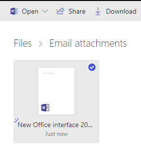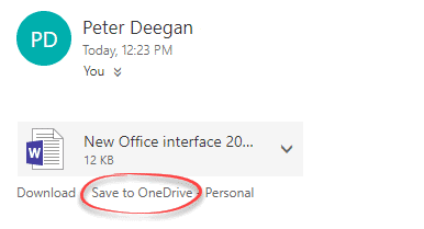 Just below the attachment icons are options to either Download the attachment or Save to OneDrive.