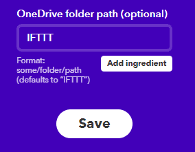 And the folder to save at OneDrive, in this case IFTTT/ but you can choose your own.