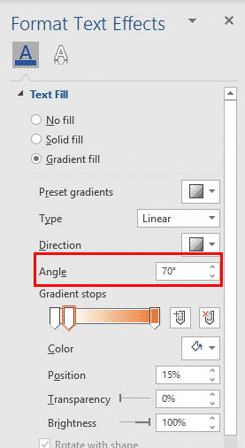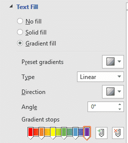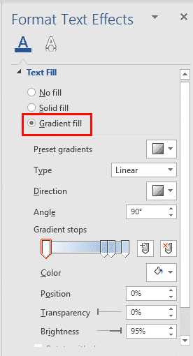 This will open the Format Text Effects sidebar on the right-hand side of your screen. Under Text Fill, select Gradient Fill to show the options available.