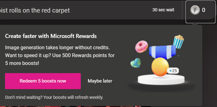 Without any boosts, you can still ask for images but they’ll take longer to make, after a 30 second wait.