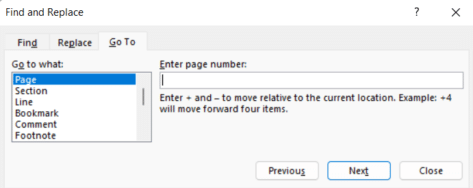 Office Watcher, Brian M has another suggestion. Ctrl + g/G jumps to the Go To tab – which is on the same dialog box as Replace.