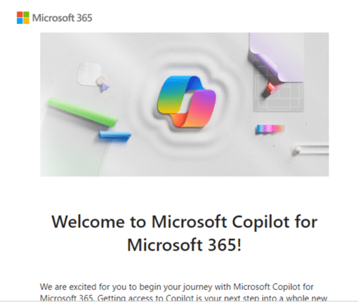 - Wait a few minutes after Copilot has been assigned to the user account. Microsoft’s internal systems can have a delay between purchase and the license system being fully updated. An email is sent to the user, like this,
