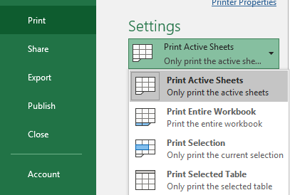 The default is ‘Print Active Sheets’. Normally that means the currently selected/visible worksheet but that’s not the whole story.