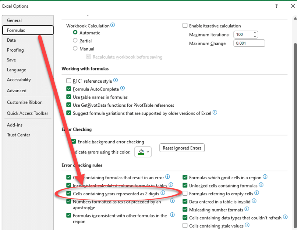 That’s why Excel has a warning about 2-digit years like this: